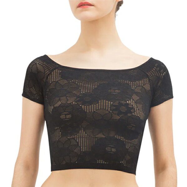 レペット【 repetto 】 バレエトップス 半袖 レース模様 トップス 黒 バレエ バレエ用品 正規品 伸縮性抜群 大人 レディース さすがレペットのバレエウェアは素敵 社交ダンス