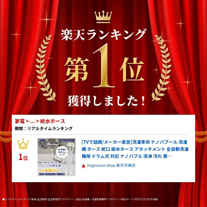 [TVで話題/メーカー直営]洗濯革命 ナノバブール 洗濯機 ホース 蛇口 給水ホース アタッチメント 全自動洗濯機用 ドラム式 対応 ナノバブル 洗浄 汚れ 黄ばみ 落ちる 消臭 部屋干し 対策 ナノバブル洗浄 洗濯 洗濯槽 掃除 日本製 送料無料