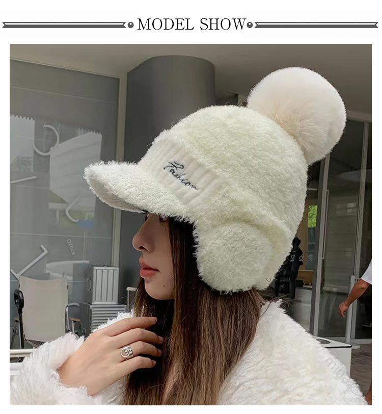 冬 男女兼用 レディース 通学 キャップ 耳当て付き もこもこ厚手ニット帽 つば付き 防寒 防風 保温 ゴルフ ポンポン付 スポーツ裏起毛キャップ 通勤 スノボ 韓国風防寒帽子