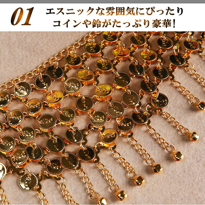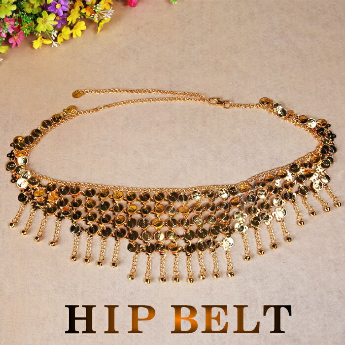 ヒップベルト ヒップアクセサリー ゴールド コイン ヒップスカーフ コインベルト エキゾチック エスニック ダンス ベリーダンス レッスンウェア レッスン着 練習着 コスチューム ハロウィン アラジン アラビアン コスプレ キラキラ ジュエリー ミカドレス cr176-pa