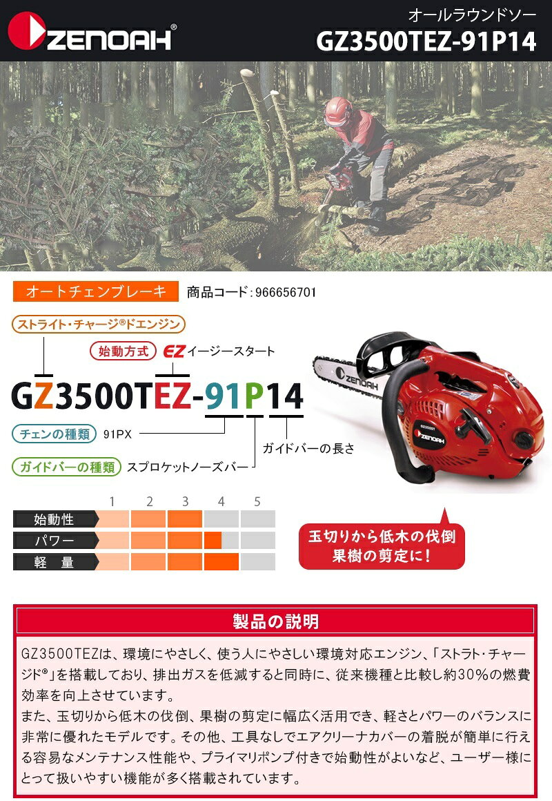 【Zenoahステッカープレゼント】 ゼノア(ZENOAH) エンジンチェンソー ジャストシリーズ 35cm 14インチ 91PX スプロケットノーズバー 【GZ3500TEZ-91P14 (966656701)】 (園芸 林業 造園 ガーデニング エンジン チェーンソー 軽量 始動 簡単 低燃費)