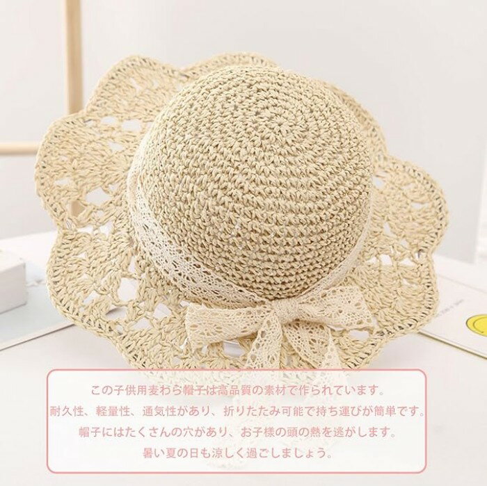 子供用 麦わら帽子 キッズ ペーパーハット ベビー 女の子 ストローハット つば広 シンプル 折りたたみ 日除け帽子 サンハット 赤ちゃん 帽子 夏 uvカット 日焼け止め 3色 サイズ調節可能 麦わら 帽子 麦わら帽子 熱中症対策 軽量 折りたたみ ベビー 子供服 春夏