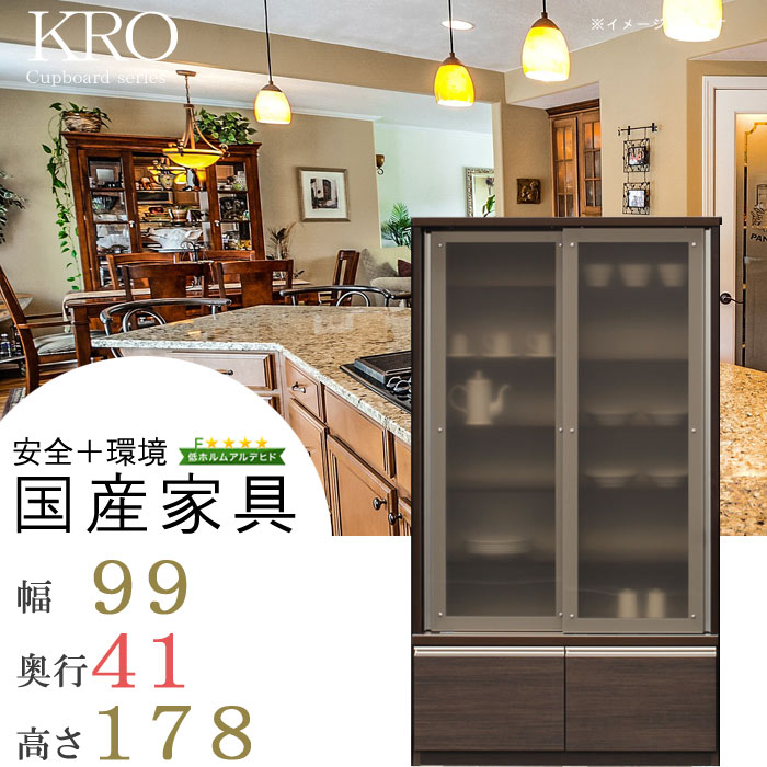 食器棚 スライド ダイニングボード 幅99cm 高さ178cm 奥行41cm ロータイプ 日本製 大型スライド引き戸 ホルムアルデヒド 最高ランク キッチンボード ダイニングボード 開梱設置送料無料 SOK QOG-100 m081- 特価 家具