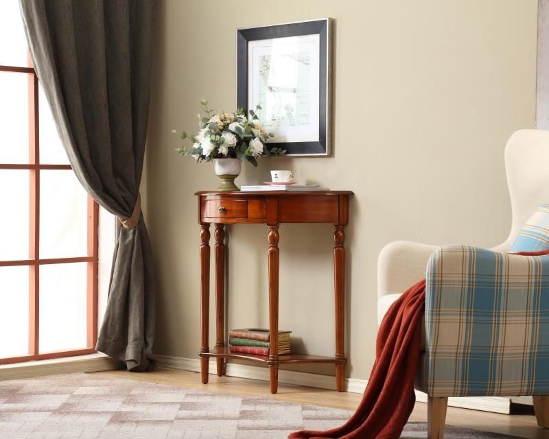 アンティーク風コンソール 木製 電話台 コンソールテーブル 家具 玄関 壁 棚 花台 電話台 コンソール おしゃれ 棚 半円形コンソール アンティーク 引き出し アンティークな半円コンソール 1ドロアー コンソールテーブル アンティーク 家具