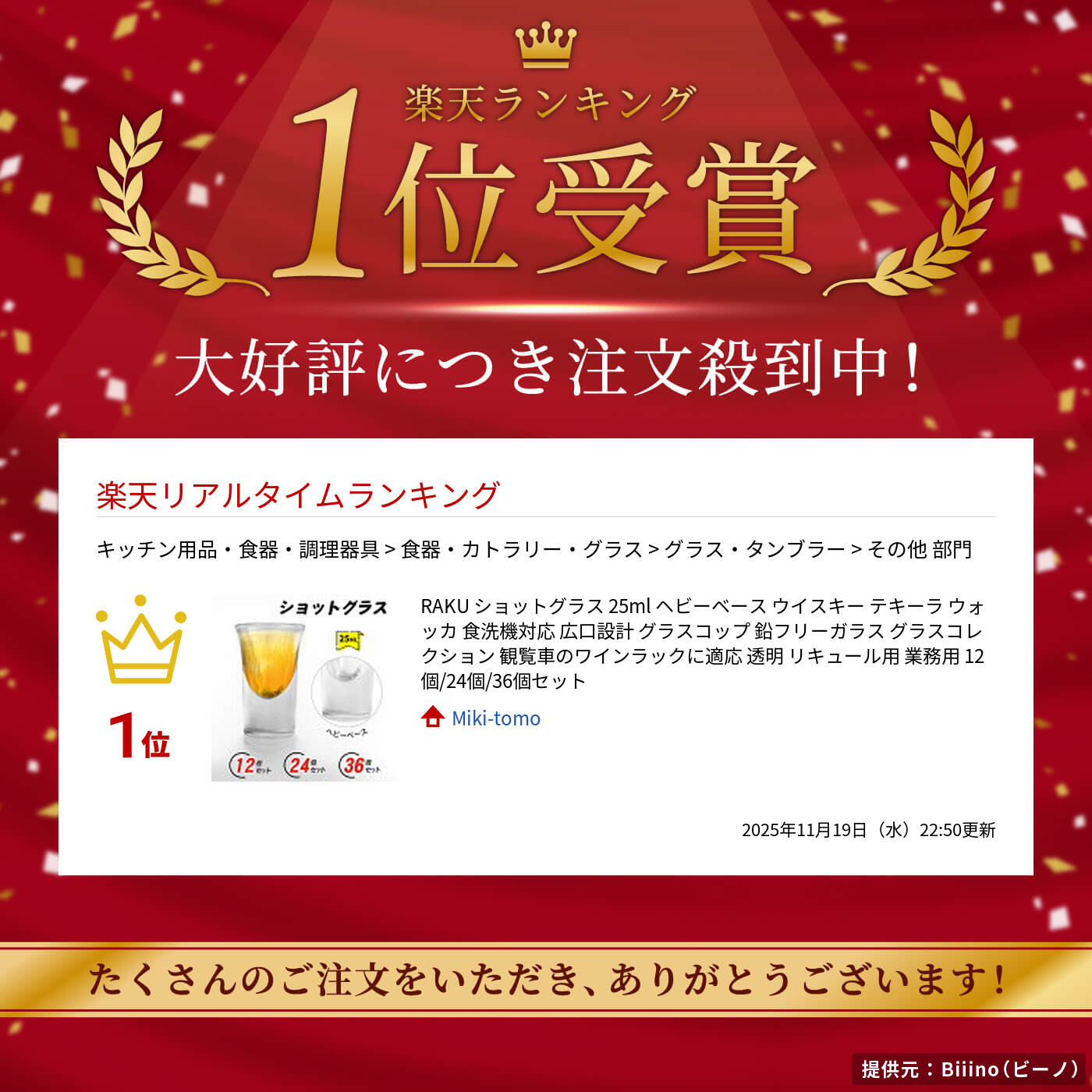 RAKU ショットグラス 25ml ヘビーベース ウイスキー テキーラ ウォッカ 食洗機対応 広口設計 グラスコップ 鉛フリーガラス グラスコレクション 観覧車のワインラックに適応 透明 リキュール用 業務用 12個/24個/36個セット