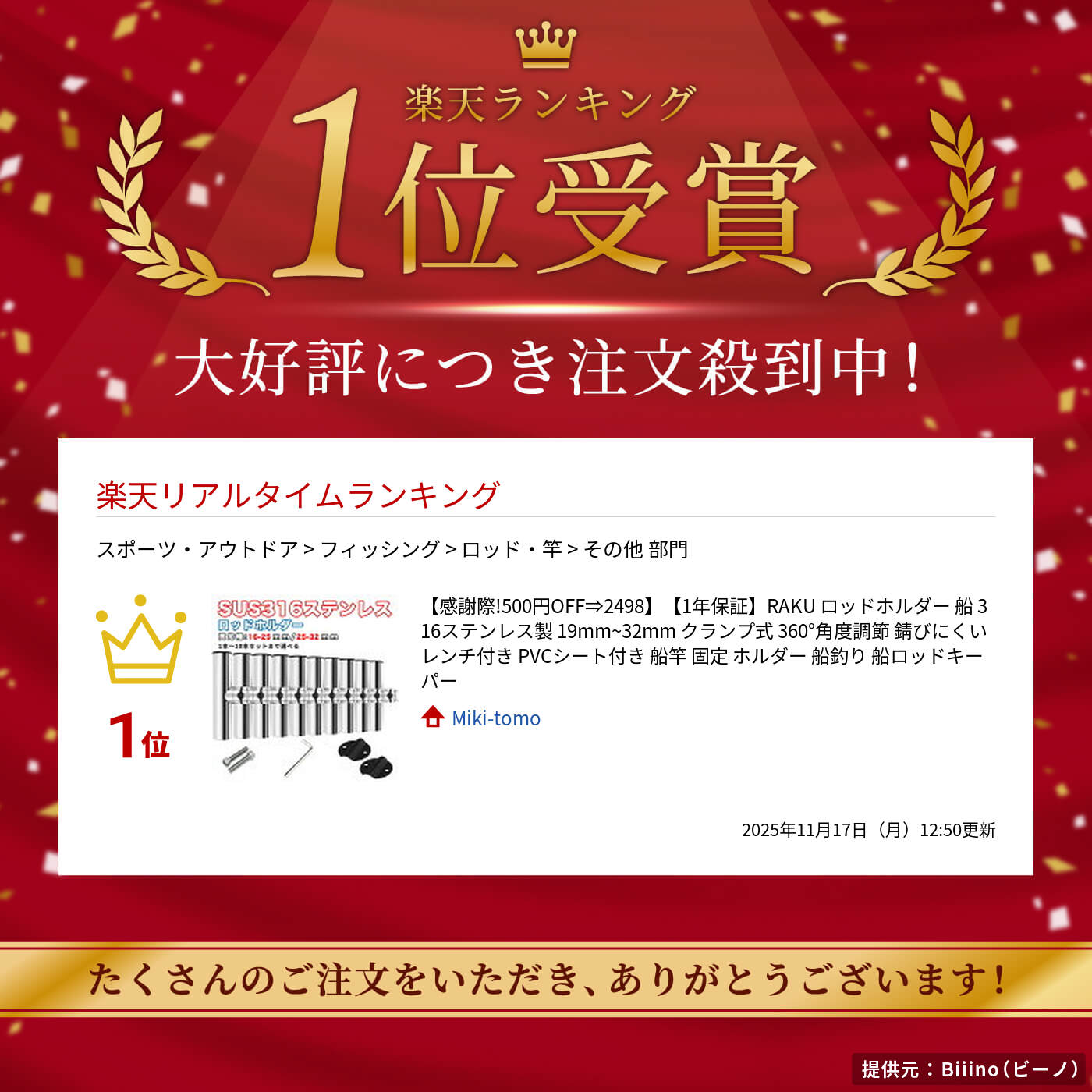【19日迄!500円OFF⇒2498】【1年保証】RAKU ロッドホルダー 船 316ステンレス製 19mm~32mm クランプ式 360°角度調節 錆びにくい レンチ付き PVCシート付き 船竿 固定 ホルダー 船釣り 船ロッドキーパー