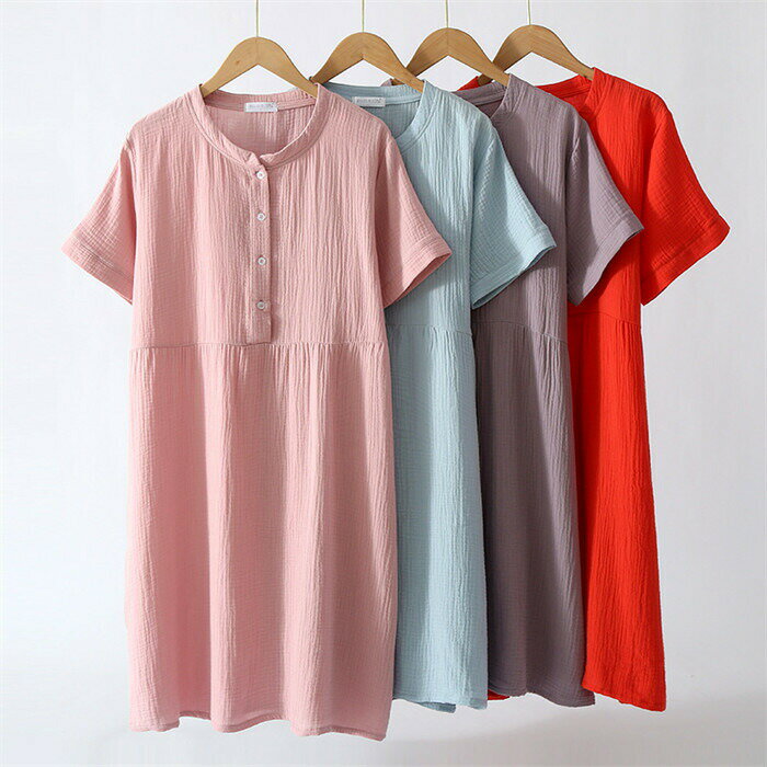 【楽天スーパーSALE限定半額】【送料無料】ダブルガーゼ パジャマ ネグリジェ レディース ルームウェア 長袖 綿100% 部屋着 ワンピース ルームワンピース 肌に優しい コットン ガーゼ ミモレ丈 透けない 無地 ゆるっと 外出可能 おそろい 婦人 ママ