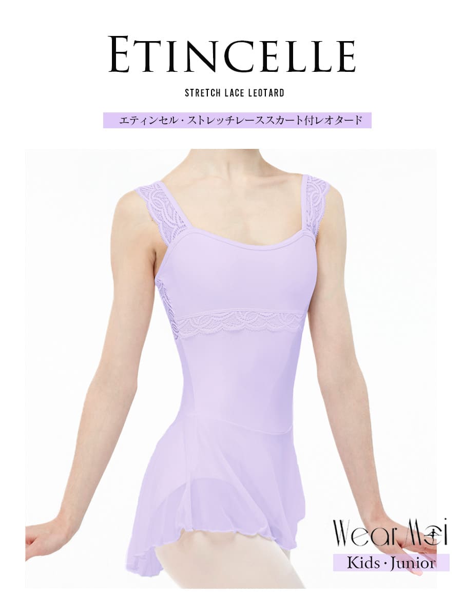 WearMoi(ウェアモア)ストレッチレーススカート付レオタードETINCELLEエティンセル(キッズ・ジュニア)裏地付き タンクレオタード(2点までメール便可)