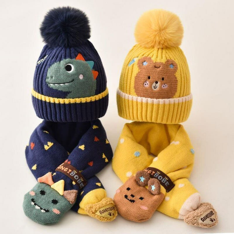 マフラー 帽子 2点セット ニット キッズ 女の子 男の子 ベビー 秋冬 防風 防寒 男児 女児 子供 通園 通学 手洗い 動物柄 暖かい 可愛い 短納期