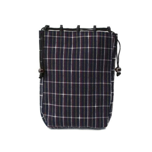【日本織商連】和装小物 日本製 巾着 信玄袋 ウール 和柄 浴衣 甚平 かわいい プレゼント お土産 日本らしさ ネコポスOK ウール信玄巾着(1.紺地チェック柄)