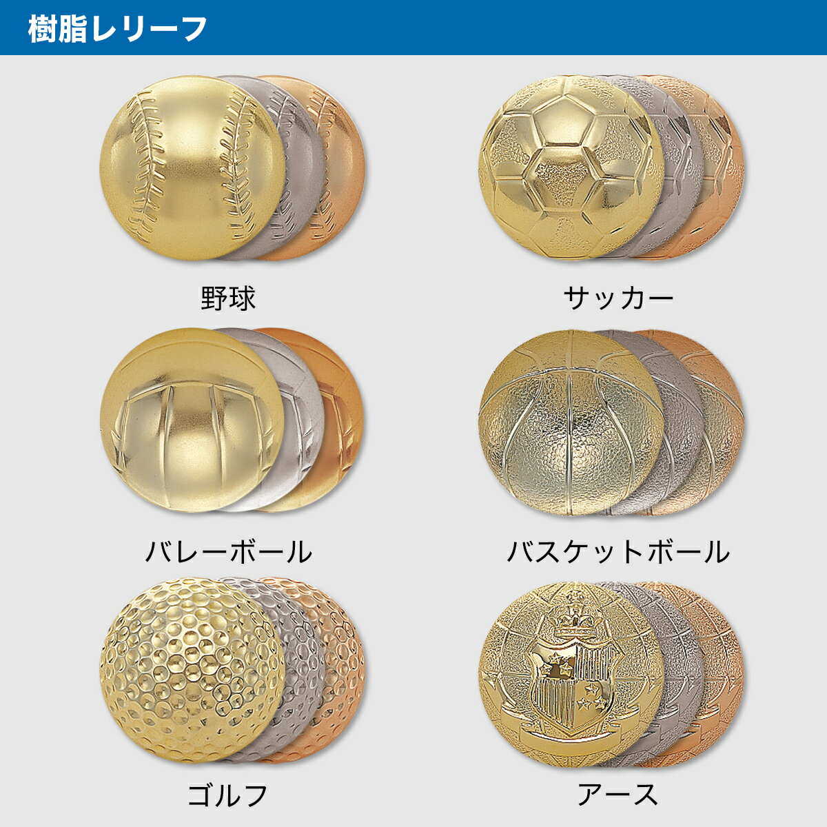 型番 KV5458(KV-5458) 樹脂製 樹脂レリーフ Aサイズ 縦17.5cm 横13.5cm 重さ230g(ボール直径70mm) Bサイズ 縦15.5cm 横12cm 重さ170g(ボール直径70mm) Cサイズ 縦13.5cm 横10.5cm 重さ120g(ボール直径50mm) 旧型番 KV3458(KV-3458)、KV1841(KV-1841) 以下の種類からお選びいただけます。 野球 サッカー バレーボール バスケットボール ゴルフ アース