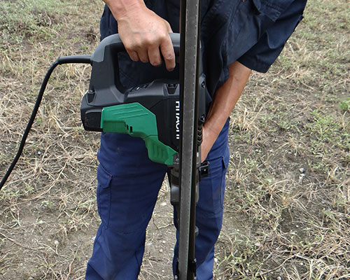 ■杭打ち機は連続打撃による金属疲労でがひび割れ破損する場合があります、地盤の状態によっては必ずアースドリルで下穴を掘って併用をお願いします。 ■石などが多い地盤の状態によっては打ち込みが出来ない場合があります。 防獣杭や園芸支柱を杭打ちする作業労力を軽減! 本商品は電動ハンマードリルと組み合わせ、30〜60cmの深さに杭打ちします。 防獣杭や農竹、鉄パイプ等様々な物を杭打ち可能ですので、園芸の支柱の埋め込みや、田畑の作物の防獣対策に力を発揮します。 【杭打ち可能パイプサイズ】単管パイプ:56Φまで 杭打ち機サイズ ハンマドリルと組み合わせ杭打ち作業 ■電動ハンマもしくは電動ハンマドリルと本商品を組み合わせることにより、杭打ち作業が可能になります。30〜60cm打ち込みが可能です。 ■地盤が固くて打ち込みが困難な場合、あらかじめ六画軸アースドリルで下穴を掘って打ち込みが可能です。 参考写真※クリックで拡大表示します 《Sサイズ》0.5m 0.8〜1.5mの杭打ちに使用可能 ※30〜60cm打ち込む場合 ・杭打ち機のみ ・電動ハンマドリルセット 《Lサイズ》1.5m 1.8〜2.5mの杭打ちに使用可能 ※30〜60cm打ち込む場合 ・杭打ち機のみ ・電動ハンマドリルセット ■電動ハンマドリルセット ■杭打ち機と『日立ハンマードリル』のセット商品です。 ■アースドリルを装着でき【下穴掘り+杭打ち】が可能です。回転と打撃振動で石混じり・硬質土壌でも問題なく下穴が掘れます。