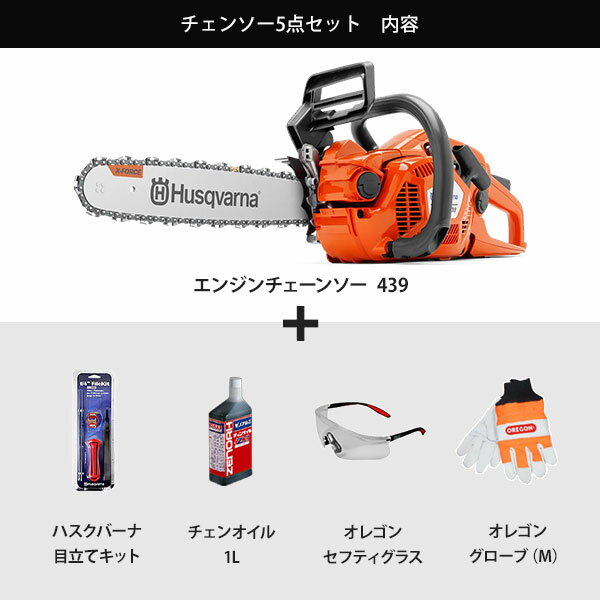 ハスクバーナ エンジンチェーンソー 439 (14インチ/91PX/35cc) 単品・セット (目立て・チェンオイル1L・安全眼鏡・グローブ・グリスガン・教則本) [Husqvarna エンジン式 チェンソー]