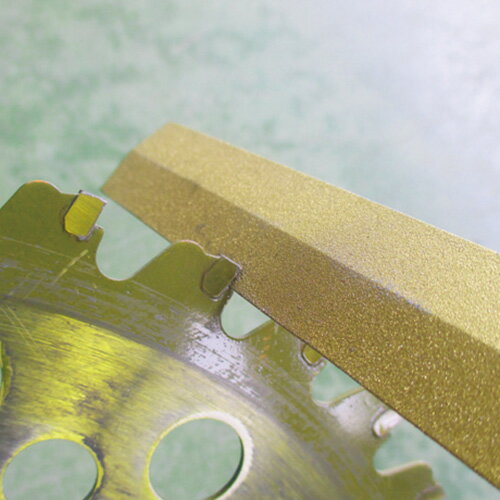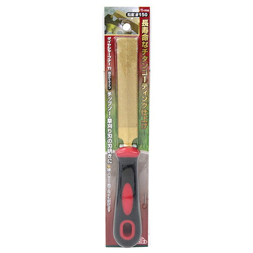・用途以外に使用しないで下さい。石材・石・コンクリート等には使用しないで下さい。使用後は水につけてブラシ等で研磨粉を取り除いて下さい。汚れがひどい場合には洗剤をつけて洗浄して下さい。 ・目詰りしたときは、ブラシ等で切り粉を取り除いて下さい。安全のため作業中は保護メガネ・保護手袋を着用して下さい。ヤスリ面に残った研磨粉がサビて表面が茶色に変色することがありますが、使用には問題ありません。 長寿命なチタンコーディング仕上げのシャープナーです。 セフティー3 ダイヤシャープナTi 目立 SDS-Ti-me 4977292687102 チップソー・草刈り刃の刃砥ぎ作業。 ■特徴 研磨に最適なダイヤモンドパウダーを基材に電着させています。 鎌、ハサミ、庖丁なども研げます。 ■仕様 ・形状:目立てタイプ。 ・粒度:150。 ・寸法:215×30×15mm ・重量:70g。 ・パッケージ寸法 : 250×45×20mm ・パッケージ重量 : 75g。 ※改良により予告なく形状や仕様が変更になる場合があります。ご了承ください。