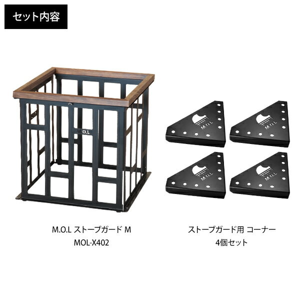M.O.L ストーブガード M MOL-X402+専用コーナー4個付きセット ブラック/ホワイト 日本製 [MOL 石油ストーブ 柵 黒 白]