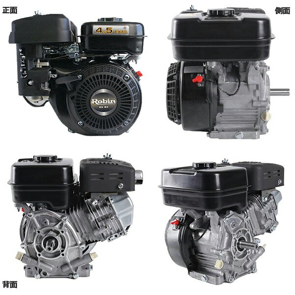 本体の色は指定できません。予めご了承ください。 信頼性と耐久性で定評あるロビンCC(旧スバル)のEX型ガソリンエンジンです。 耐摩耗性に優れたチェーン駆動オーバーヘッドカム(OHC)構造を採用。不快な高周波音を大幅にカットし、マイナス10度の環境下でもケッチン無く確実なエンジン始動します。発電機・高圧洗浄機・建機・土木・農機・林業など、幅広い製品に搭載されています。 特長 騒音低減!不快な高周波カット! 既存の同クラスエンジンと比べ騒音値を約2dBA低減。更に、不快な高周波音を大幅にカットで心地よい音に。 簡単!一発始動! 軽いリコイル操作で簡単・確実な始動を実現。マイナス10度の環境下でもケッチン無く、確実なエンジン始動。 伸びが少なく耐摩耗性に優れたOHC構造 信頼性の高いチェーン駆動のオーバーヘッドカム(OHC)構造。伸びが少なく、耐摩耗性に優れたチェーン採用。 優れた基本性能 最適な燃焼室・ストレートな吸気ポート設計によるハイパワーと経済性の両立。 仕様 モデル EX13D 種類 直結型 形式 空冷4サイクル傾斜形単気筒OHCガソリンエンジン 排気量 126mL 連続定格出力 1.9kW(2.6HP)/3000rpm 2.2kW(3.0HP)/3600rpm 最大出力 3.2kW(4.3HP)/4000rpm 最大トルク 8.1N・m/2500rpm シャフト径 φ18 回転方向 左 (出力軸側より見て) 使用燃料 自動車用無鉛ガソリン 燃料タンク容量 2.3L 始動方式 リコイル式 乾燥質量 約14kg 寸法 長297×幅341×高318mm 寸法図 型式 EX13-2B(1/2減速型) EX13D(直結型) 回転数 1800~2000rpm 3000~3600rpm 用途 動力噴霧器・運搬車・ポンプなど 建設機械・プレート・ランマー・カッターなど