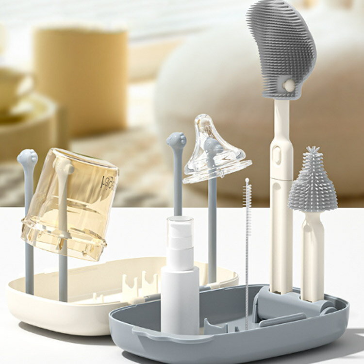 ボトルブラシ 6点セット スタンドラック シリコン ブラシ 哺乳瓶ブラシ 乾燥スタンド 哺乳瓶 6点セット 乳首ブラシ 乾燥 水切りラック 洗浄 消毒 ストローブラシ 旅行 持ち運び リコンブラシ スタンド 水切りスタンド