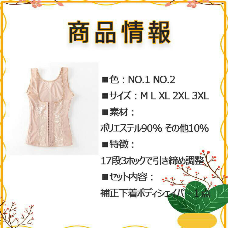 ■色:NO.1 NO.2■サイズ:M L XL 2XL 3XL■素材:ポリエステル90% その他10%■特徴:17段3ホックで引き締め調整■セット内容:補正下着ボディシェイパー1点コルセット 補正下着 ボディシェイパー 補正下着ボディスーツ レディース 姿勢矯正 はみ肉垂れ肉を胸に寄せてバストアップ くびれ ボディライン ボディシェイプ 薄手 軽い メッシュ 通気性 幅広ストラップ お腹/ウエスト引締め