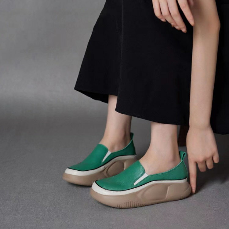 毎日でも履きたい定番スリッポン、素敵な色合いがコーデをえらばない。厚底なのに軽くて、足へ負担をかけない。キレイなシルエットがカジュアルでもキレイめでも合わせやすい。歩きやすい船型底、クッション性と衝撃吸収性に優れるソール、足の痛みを防ぎます。耐摩耗性に優れたゴム底、滑りにくく、旅行やショッピングでも、足が疲れず快適に過ごせるので、安全で快適な歩行を実現します。●商品の色は、撮影時の光や、お客様のモニターの色具合などにより、実際の商品と異なる場合がございます。あらかじめ、ごください。●製品によっては、生地の特性上、洗濯時に縮む場合がございますので洗濯時はご注意下さいませ。▼色味の強い製品によっては他の衣類などに色移りする場合もございますので、速やかに(脱水、乾燥等)するようにお願いいたします。 ▼生地によっては摩擦や汗、雨などで濡れた時は、他の製品に移染する恐れがございますので、着用の際はご注意下さい。▼生地の特性上、やや匂いが強く感じられるものもございます。数日のご使用や陰干しなどで気になる匂いはほとんど感じられなくなります。 メーカー希望小売価格はメーカーカタログに基づいて掲載しています