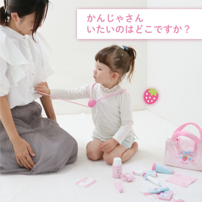 おままごとセット マザーガーデン いちごのお医者さんセット 木製 おままごと セット 子供 お医者さんセット お医者さんごっこ 病院ごっこ かわいい ままごとセット 木 おもちゃ お医者さん ドクター 知育玩具 4歳 3歳 女の子 男の子 誕生日 プレゼント