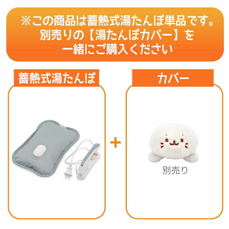 *こちらは本体のみの販売となり、カバーは別売りとなります。 しろたんと一緒にあたたまろう♪お湯の入れ替えいらずの蓄熱式湯たんぽ 商品詳細 セット内容 本体 コード(湯たんぽカバーは別売りです。) サイズ 本体:幅約18×奥行き約26.5cm コードの長さ:約65cm 蓄熱時間 約15分 使用時間 カイロとして約4時間 アンカとして約6〜8時間 蓄熱温度 約65℃ 電圧/電力 AC100V/380W 品質 本体表:PVC・ポリエステル・ポリカーポネート・ポリプロピレン・銅・エポキシ樹脂・304ステンレス・ABS・水 耐熱液 水 安全装置 通電安全装置・温度調節・温度ヒューズ 原産国 中国 蓄熱方法 *本体の安全カバーを開けてください *水平で安定した場所に本体と蓄熱プラグを置きます。(必ず水平に置いて、布団の中や布団の上などでの蓄熱もおやめください。) *アームを倒してプラグを蓄熱用コンセントにグッと奥まで挿し込んでください。 *電源プラグをコンセントに挿しこんでください。 *赤ランプ点灯し、約15分で蓄熱が完了します。ランプが消えたら蓄熱完了です。完了後は必ず蓄熱プラグを本体から抜き、電源プラグをコンセントから抜いてください。 *本体を必ず保温カバーに入れてご使用ください。(カバーは別売りです。) (カバーに入れずに使用された場合低温やけどの原因になります。) *説明書をよく読んで使用方法をお守りください。 お手入れ *本体の安全カバーを確実に閉めて、柔らかい布をぬるま湯か薄めた中性洗剤に浸し、よく絞って本体の汚れを拭き取り、乾いた柔らかい布で拭いて、十分に乾かしてください。 〈別売り〉選べる湯たんぽカバーはこちら [関連ワード]しろたん Sirotan シロタン 8月8日しろたんの日 アザラシ あざらし タテゴトアザラシ 竪琴あざらしの赤ちゃん かわいい 可愛い 癒し 和み なごみ キャラクター マザーガーデン クリエイティブヨーコ 動物 ぬいぐるみ お湯不要 入れ替え不要 湯たんぽ ゆたんぽ アンカ あんか 充電式 蓄熱式 冷え対策 防寒対策 あったか あたたか オフィス アウトドア 携帯 安眠 快眠 インテリア雑貨 雑貨 しろたんのいる生活 お誕生日プレゼント クリスマスプレゼント お祝い 母の日 父の日 子供の日 孫の日 敬老の日 バレンタインデー ホワイトデー プレゼント ギフト 贈り物 新生活 新生活応援