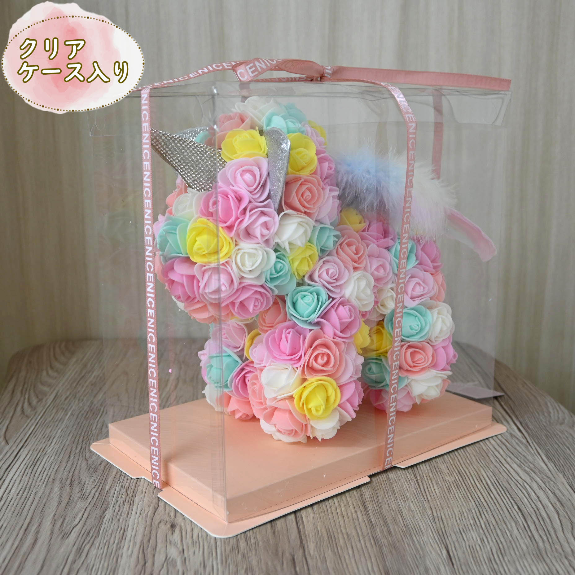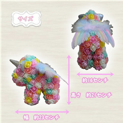 可愛いレインボーカラーのローズユニコーンの置物です。 ウレタン素材のローズは、軽くて柔らかいです。 アートフラワーなので、長く飾って楽しんで頂けます。 伝説の生物【ユニコーン】は、古くから「癒しの存在」とされ、人を幸せに導く象徴であると言われてきました。 そんな素敵なユニコーンは、プレゼントやお祝いにもピッタリです。 置物 ・商品名ローズユニコーン ・商品の説明 ◎サイズ:約高さ約21cm × 横幅約23cm ◎ケース:約W26センチ × D17センチ × H24.5センチ ※こちらの商品は、香りはしません。 ・梱包と発送方法贈り物としてもお届けができます クロネコヤマト便でのお届けです
