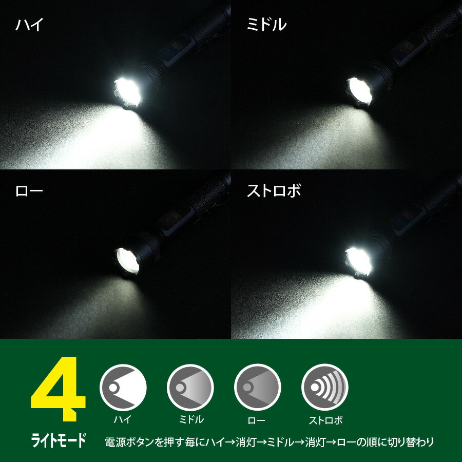 ○デジタルパワーインジケーター ○明るさ最大1000ルーメン ○3段階の明るさ調節が可能 ○残り稼働時間が一目でわかるデジタル表示付き ○ ○ 商品仕様 本体サイズ(幅)3.3 × (奥行)17.8 × (高さ)3.3cm 本体重量約175g 明るさ最大1000ルーメン(ハイモード時) 点灯最大時間30時間(ローモード時) 防水性能IPX4 光源LED 使用電池リチウムイオン電池 照射距離最大175m(ハイモード時) 本体保証ご購入日から1年間