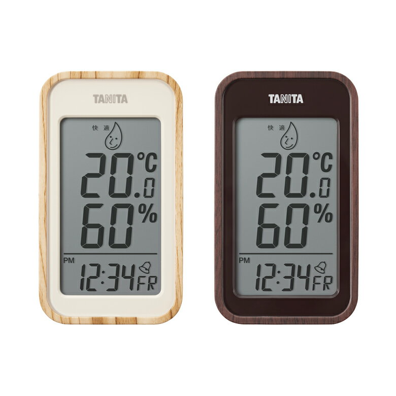 【正規品】タニタ デジタル 温湿度計 TT-592 送料無料 温度計 湿度計 木目 置時計 おしゃれ クロック シンプル コンパクト 小型 室温計 熱中症 子供部屋 お年寄り 介護 会社 職場 設備 施設 キッチン リビング マグネット フック 引っ掛け 日付 カレンダー 表示 TANITA TT592