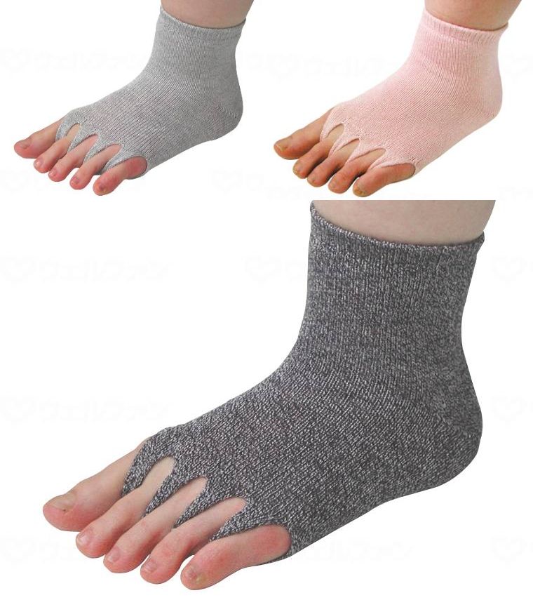 メール便出荷 指ぬき健康ソックス 5本指 ソックス Mサイズ 4色 グレー サーモンピンク ライトグレーボーダー ピンクボーダー ユニロック