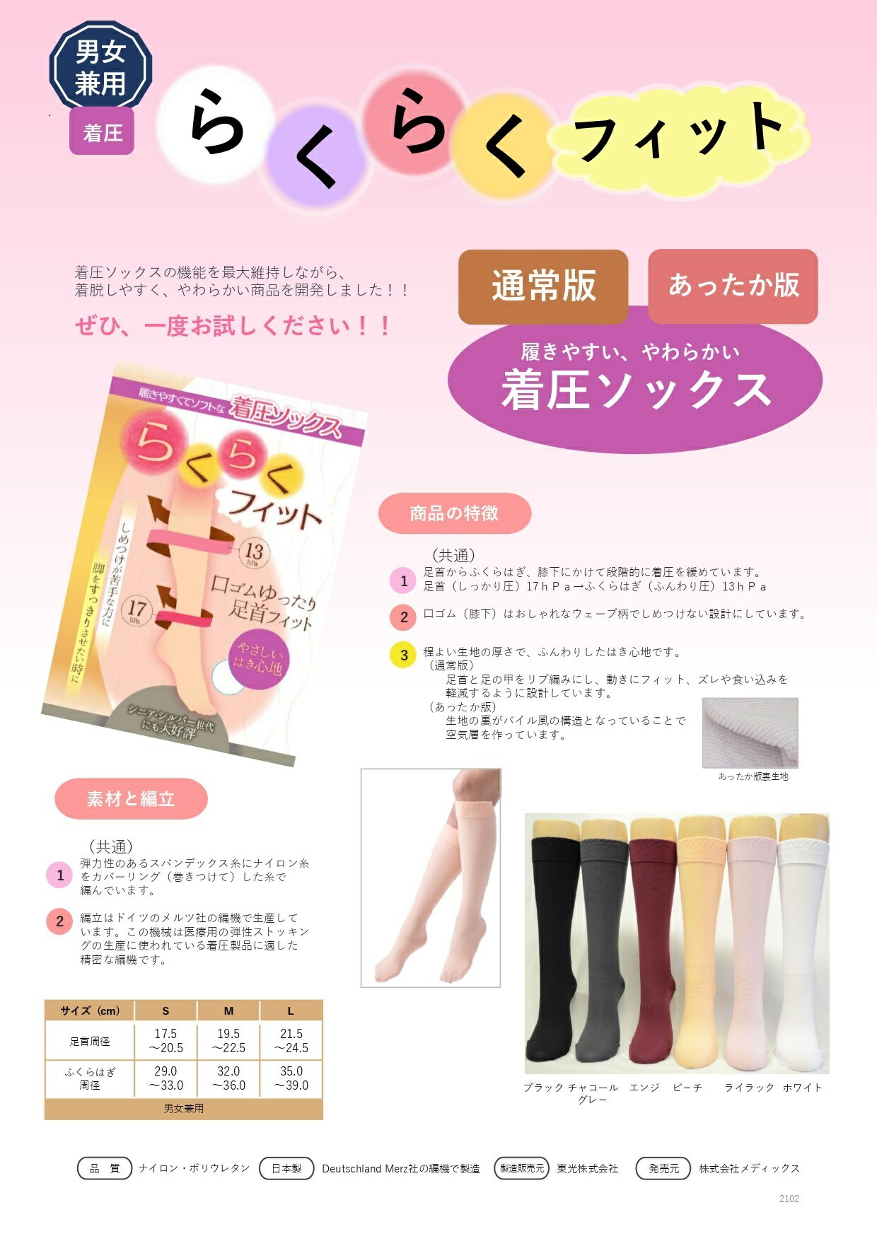 メール便出荷 着圧ソックス らくらくフィット S M L 3カラー 日本製 17hPa メディックス