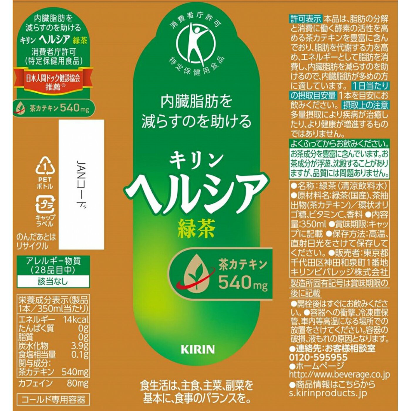 キリン ヘルシア緑茶 スリムボトル 350ml×24本×2ケース (48本)(送料無料、一部地域は除く) 特定保健用食品 特保 トクホ お茶 茶カテキン 日本人間ドック検診協会推奨 内臓脂肪を減らすのを助ける 緑茶α
