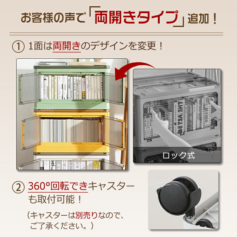 商品情報商品情報サイズ:21L-幅40.5*奥行29*高さ24cm27L-幅44.5*奥行31.5*高さ26cm30L-幅47.5*奥行35.5*高さ24cm37L-幅48*奥行36*高さ28.5cm44L-幅51.5*奥行36*高さ30cm68L-幅60*奥行42*高さ33.5cm98L-幅67*奥行47*高さ37cm128L-幅73*奥行49*高さ40cm※製品サイズには実測採寸のため、1-2cmの誤差がございます。ご了承ください。カラー:ベージュ・ホワイト・グリーン・ブルー・イエロー素材:ポリプロピレンスッキリ収納収納箱界の大革新!使わない時折りたたんで収納できます(高さ7cm)、車内や室内のちょっとした隙間に置くことができます。5方向開閉可能・上にふた付き、物を入れやすい。(蓋をロックできます。)・物の出し入れは上だけではなく、左右前後も扉付き、ボックスを積み重ねる状態にも楽に横から物を取り出して、伝統的な収納ボックスに比べてもっと便利で、機能性が向上します。透明で見やすい箱体がクリアで内容物が見えます。物を探すも時間がかかりません。スペース活用溝が付いているので、積み重ねて使用することで、効率よく収納スペースが活用できる収納ボックスです。キャスター付き箱の底はキャスターが付き、重くても楽に移動できます。両側ハンドルもあり持ち運ぶもとても便利です。防塵・防湿・防虫上のふたと側面の扉もロックできます。ホコリ防止、防塵・防カビ・防湿・防虫ができます。いろいろな場所で収納できます。ベッド下収納、押入れ、クローゼット、子供の部屋に、車、リビングルーム、寝室、寮、事務室などの場所にお勧めします。丈夫なつくりなので、アウトドアでもガンガン使えます。キャンプやアウトドア、車内収納にもオススメです。丈夫耐用実用性も強いです。このコンテナボックスを折りたたんで収納できます。キャビネットや衣装だんすの中に入れたり、折りたたんでキャビネットや衣装だんす、靴箱として利用できます。本体は高品質なPPを採用し、高い靭性、耐磨耗・引き裂きに強く、より強い荷重能力があります。使用するときは何個のボックスを積み重ねて形を変えられません。関連キーワード収納ボックス 前開き キャスター付き おしゃれ 折りたたみ フタ付き 北欧 プラスチック プラスチック 収納ケース コンテナボックス コンテナ 物置 ストレージボックス 蓋付き おもちゃ箱 スリム クリアケース 収納 クリアボックス 押し入れ収納ケース 人気 おすすめ シンプル モノトーン 小物入れ おもちゃ箱 子供部屋 衣装ケース 押し入れ タンス トランク 車 リビング ダイニング キッチン 倉庫 寝室 クローゼット 送料無料 ペットボトル収納 ペットボトル フラップボックス即納【まとめ購入でお得★さらに20%OFF】収納ボックス 折りたたみ コンテナボックス 5面開閉 1~5個組 衣装ケース 大容量 大型 キャスター付き 押し入れ収納 クリアボックス 蓋付き 積み重ね可能 衣類 布団 おしゃれ 一人暮らしすぐ使える 2タイプ 5色 21L 27L 30L 37L 44L 68L 98L 128L 強い耐荷重 防虫ボックス付き プラスチック 家庭用 防塵 無臭 茶色 ギフト 清潔感 スッキリ 多機能 長持ち プレゼント おもちゃ 組立簡単 6