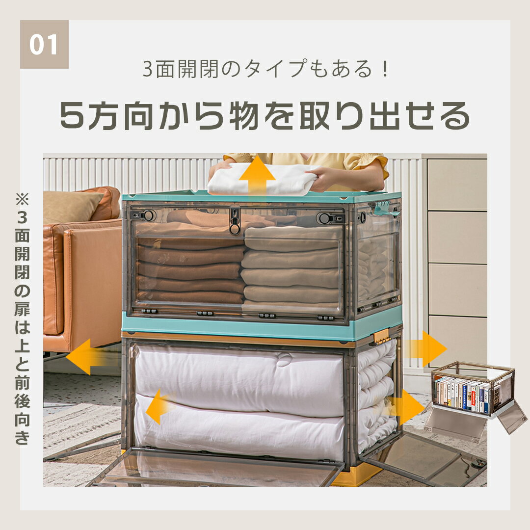 即納【在庫処分★50%OFFクーポン配布中】収納ボックス 5面開閉 1~5個組 折りたたみ コンテナ ボックス 前開き 収納 ベッド 衣装ケース 大容量 コンパクト 押し入れ 収納ケース 蓋付き おもちゃ 衣類 プラスチック おしゃれ クリアボックス 移動便利 スッキリ 一人暮らし