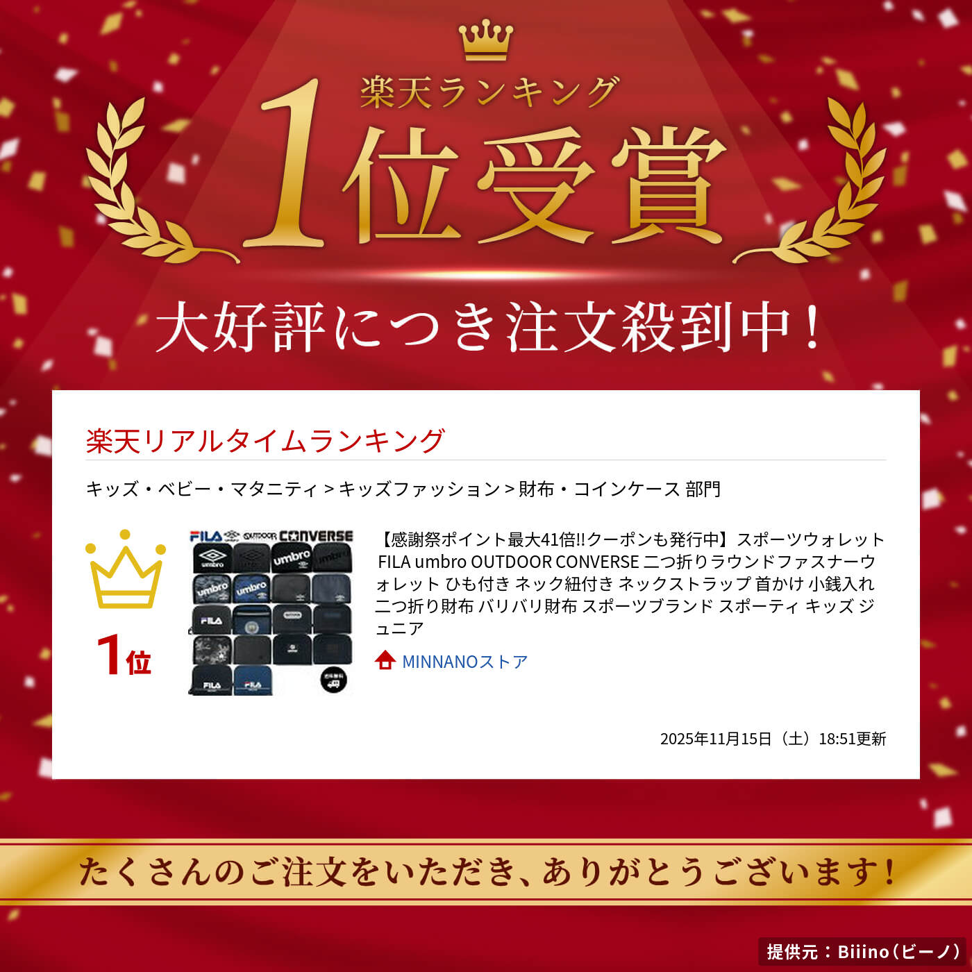 【17日23:59まで!楽天勝利エントリーでP2倍】スポーツウォレット FILA umbro OUTDOOR CONVERSE 二つ折りラウンドファスナーウォレット ひも付き ネック紐付き ネックストラップ 首かけ 小銭入れ 二つ折り財布 バリバリ財布 スポーツブランド スポーティ キッズ ジュニア