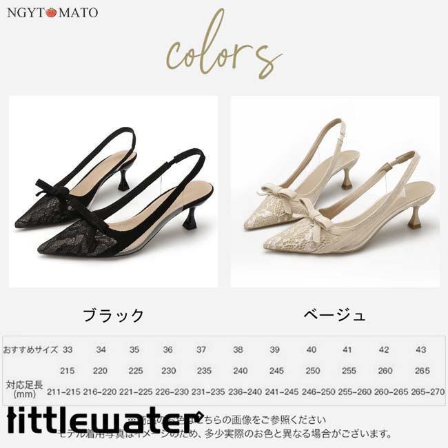 パンプス ストラップ リボン バックストラップサンダル ポインテッドトゥ 総レース ヒール 歩きやすい 履きやすい カジュアル おしゃれ 美脚 パーティー 結婚式