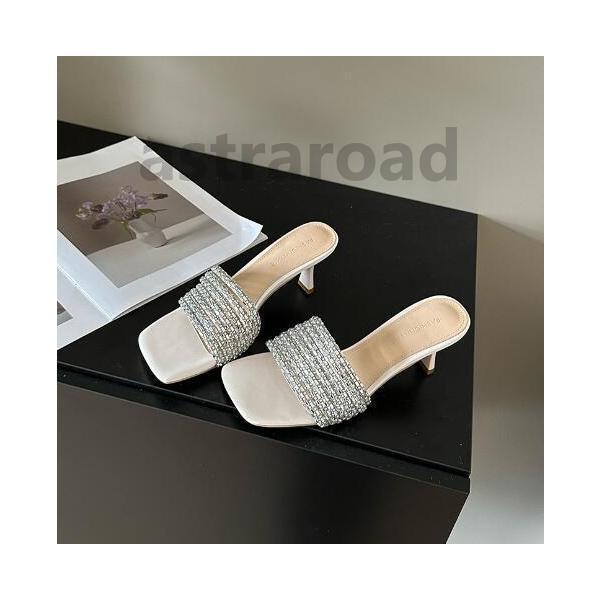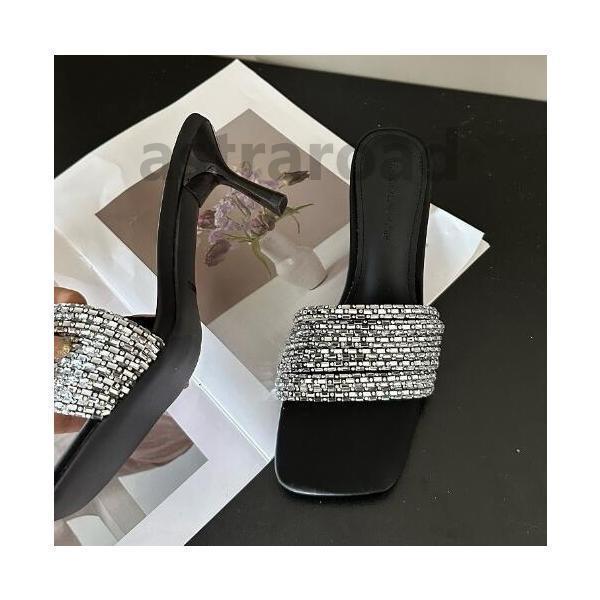 ミュール チャンキーヒール レディース サンダル キラキラ スクエアサンダル ハイヒールミュール ラインストーン セレモニー シューズ 夏