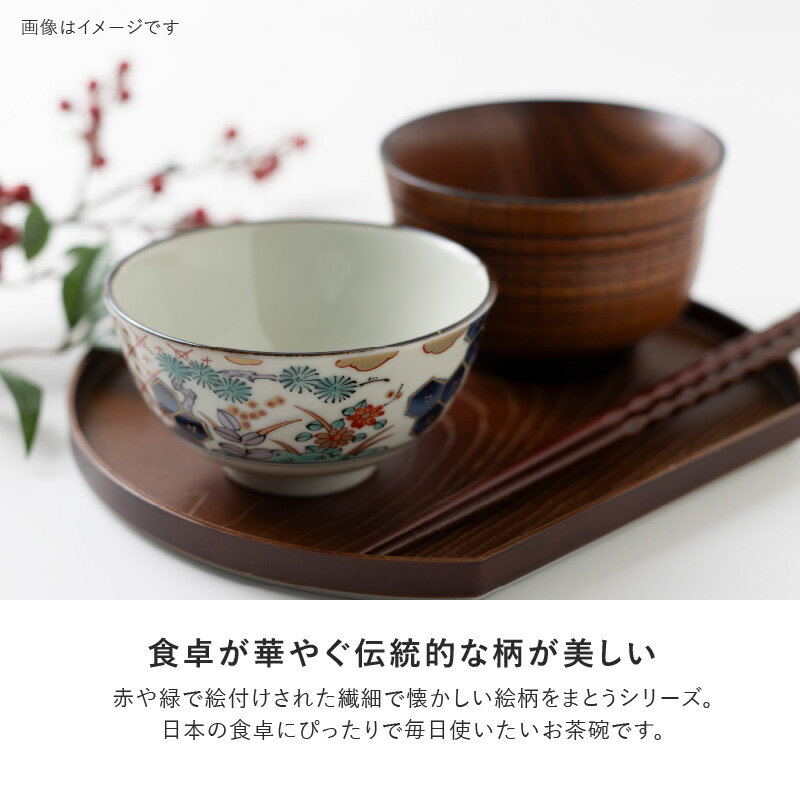 伝統的な柄が美しい「染錦古伊万里」シリーズ。 赤や緑で絵付けされた繊細な絵柄が魅力的です。 105茶碗は小ぶりで、お子様や女性にちょうどいいサイズ。 どの柄も可愛らしく、別形状と揃えてみてはいかがでしょうか♪ ▼シリーズ一覧はこちら▼ SPEC サイズ 約Φ10.5×H5.5cm 本体重量 約160g 満水時容量 約250ml 素材・材質 陶磁器 原産国 日本(美濃焼) 電子レンジ 使用可 食洗機 使用可 弊社では、ご注文いただきました商品をピッキング、梱包のタイミングで検品を実施し、お客様へ出荷しております。 焼き物は素材の違いや製造工程により、鉄粉、ピンホール、釉薬のハゲやムラ、ゆがみ、多少のガタつきなどの現象が発生致します。製造元メーカーと、弊社での検品を通過した商品は、原則、上記のような個体差を理由に「返品・交換」はお受けすることができかねます。あらかじめご了承ください。商品ひとつひとつ微妙に異なる特性を、器の個性として、温かみや風合いとしてお楽しみいただければ幸いです。 何卒ご理解くださいますよう、よろしくお願い致します。 ※画像はイメージです。 ※画像に写る小物など、商品タイトル以外のものは含まれません。 ※商品の色味はお客様のお使いのモニター設定や、お部屋の照明等により実際と異なる場合がございます。 みのる陶器では、オリジナル商品を中心にオシャレでリーズナブルな食器をお届けしています。カレーやピラフなどにぴったりな深皿、パスタやメインディッシュの雰囲気ががらりと変わるプレート、毎日のゴハンが楽しみになるような飯碗・茶碗、丼やラーメンにちょうどいいどんぶり、おうちカフェ気分になるマグ、サラダやスープにも使えるボウル・鉢など、素敵なうつわでテーブルコーディネートをお楽しみください。陶器のような温かみのある和食器・洋食器以外にも箸や木製のカトラリー・汁椀・トレイなど、様々なテーブルウェアを取り揃えております。記念日や誕生日などのプレゼントに最適な化粧箱入のギフトセットもご用意。きっとお気に入りが見つかります。