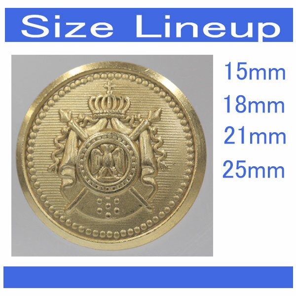 ☆ メタルボタン ☆Metal Buttonハンドメイド(手作り 手芸 釦の付け替え)などにいかがでしょうか サイズ 15mm 18mm 21mm 25mm入数 1個カラー HG釦穴形状 裏足付素材 真鍮染色 不可日本製メール便発送 可 (配達日時指定不可)発送までの目安日数 2営業日以内