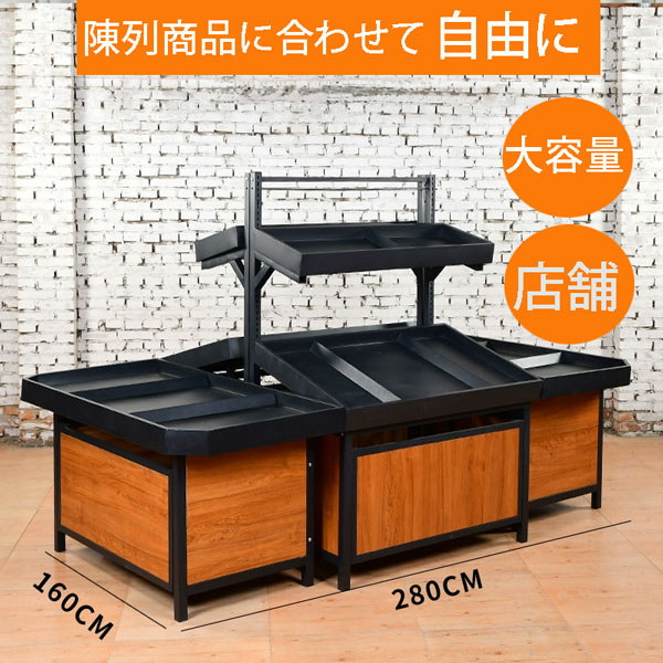 木製陳列棚 L 直売所 イベント用 展示会 青果 野菜 フルーツ パン 多機能 ディスプレイラック 陳列台 業務用 スーパー [YT00037]