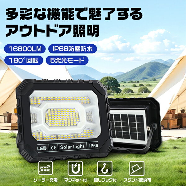 LED投光器 充電式 作業灯 300Wより明るい 爆光 16800LM 16800mAH 1台 2台 4台10台 マグネット付 ソーラー充電 スマホ充電対応 懐中電灯 5つモード 180°調整 IP66防水 コンパクト 屋内 アウトドア用 キャンプ 防災 PL保険 3年保証