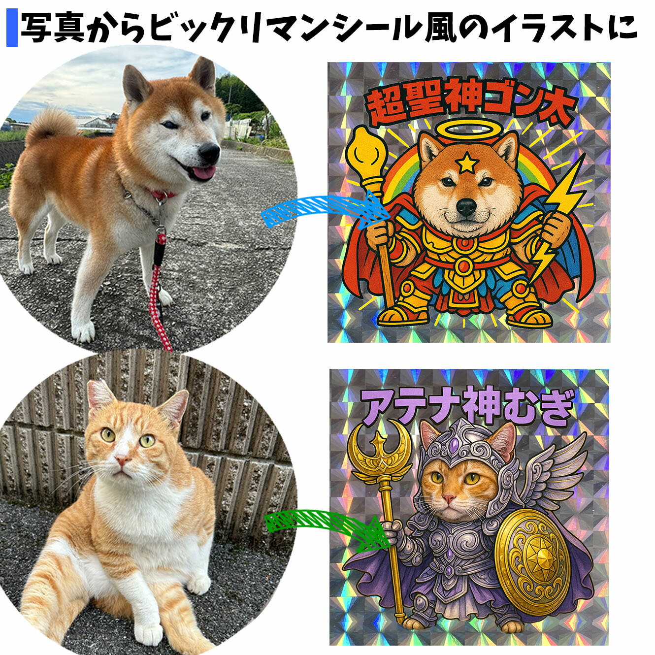 【オーダーメイド】 うちの子をビックリマンシール風に ペット ☆世界で一つの☆ 犬 猫 鳥 写真から作る キラキラ ホログラム プレゼント ギフト 記念 名入れ art アート 面白い