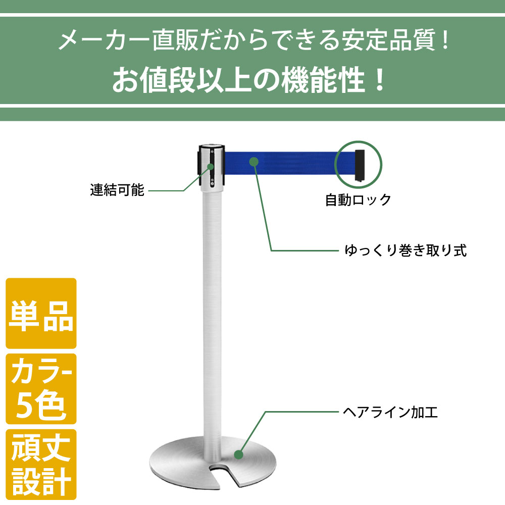 【最大3000円OFFクーポン配布中!〜11/27 01:59まで】家具のAKIRA ベルトパーテーション パーテーション 単品 1本 連結ベルト スタッキング ブルー ステンレス 仕切り 誘導ポール ガイドポール 高さ89cm 2mサイズ お客様案内 イベント 立入禁止 誘導 整列 行列 行列整理