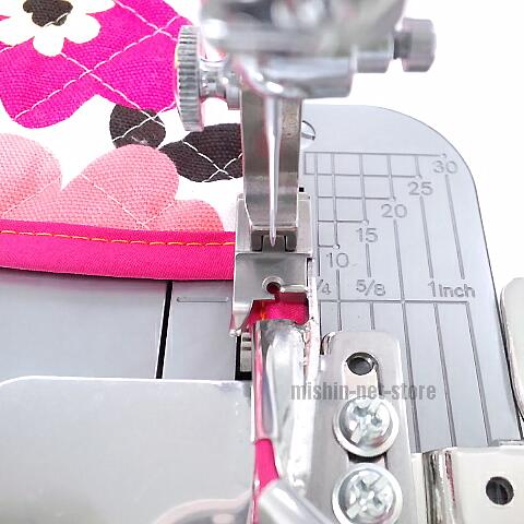 ~職業用ミシン~押さえ~おさえ~アタッチメント~オプション~HS58/HS-85/HS75/HS-75 四つ折りタイプのバインダーなので、事前の二つ折り処理やアイロンがけが不要 直線はもちろん、緩いカーブも縫うことができます。 ●サイズ テープ幅:32mm、仕上がり幅:8.5mm ※仕上がりサイズは、身生地の厚みやテープの伸縮により、前後します。 【内容物】スイセイ四つ折りバインダー 止めネジ ワッシャー バインダー用押え 生地から作ったオリジナルのバイアステープでも端がほつれることがなく、 美しい仕上がりになります。 ゆるい内カーブ、外カーブも上手く縫うことができます。 薄いビニールテープにも使用できます。 手前側にスイングするので、ガイド位置の移動がスムースに行えます。ねじ2個で固定します。 【セット内容物】スイセイ四つ折りバインダー 止めネジ ワッシャー バインダー用押え