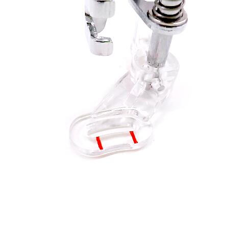 〜JANOME ジャノメ 家庭用ミシン 実用ミシン アタッチメント オプションパーツ 押え おさえ 押さえ option 針の動きに合わせて押さえが上下するので、生地をフリーハンドで動かしながら縫うことができます。 手縫いのような自由な曲線や、図柄通りの模様がスムーズにできます。 図案の縁取りやしつけ縫いに。 しっかり押さえる【クローズタイプ】 縫い模様:直線縫い(中基線) *送り歯を下げて使用。