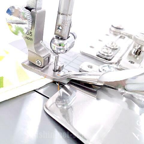 四つ折りタイプのバインダーなので、事前の二つ折り処理やアイロンがけが不要 直線はもちろん、緩いカーブも縫うことができます。 ●サイズ テープ幅:24mm、仕上がり幅:6.0mm 身生地の厚み:最大約1.0mmまで ※仕上がりサイズは、身生地の厚みやテープの伸縮により、前後します。 【内容物】スイセイ四つ折りバインダー 止めネジ ワッシャー バインダー用押え 生地から作ったオリジナルのバイアステープでも端がほつれることがなく、 美しい仕上がりになります。 ゆるい内カーブ、外カーブも上手く縫うことができます。 薄いビニールテープにも使用できます。 手前側にスイングするので、ガイド位置の移動がスムースに行えます。ねじ2個で固定します。 【セット内容物】スイセイ四つ折りバインダー 止めネジ ワッシャー バインダー用押え