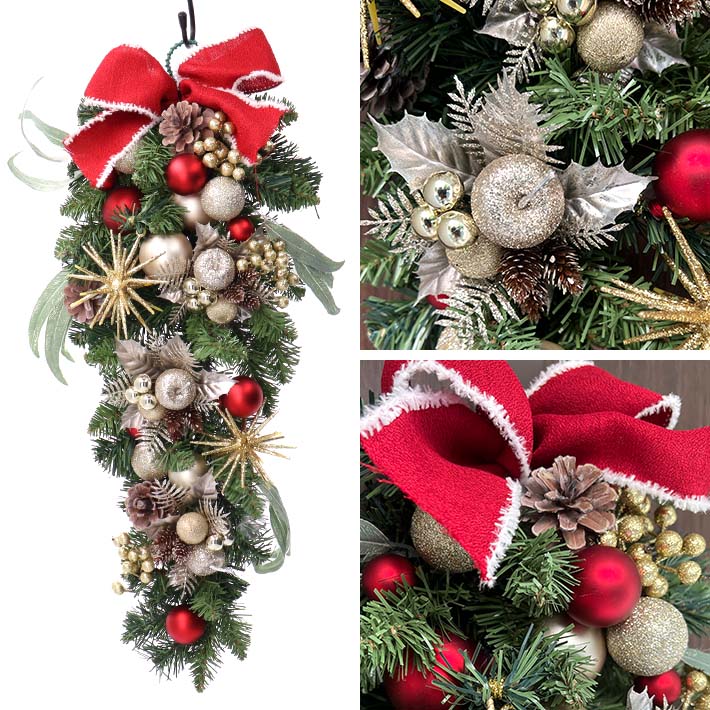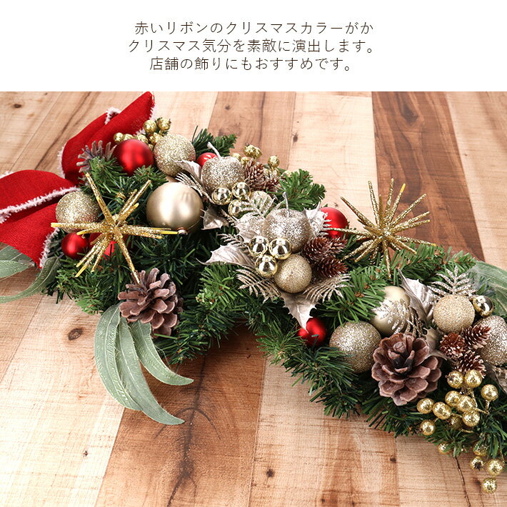 ◆リースハンガー特集◆ ◆リース・スワッグはこちら◆ 商品説明 特徴 大きいリボンがかわいいスワッグです。 クリスマスカラーが華やかに演出します。 贈り物にもおすすめです。 サイズ H:65cm、W:25cm、D:25cm 配達方法 宅配便 ご注意 ※パッケージは予告なく変更になる場合があります ※素材感や色合いの表現には個人差があります ※環境により色合いが異なる場合があります ご了承の上ご注文お願い致します