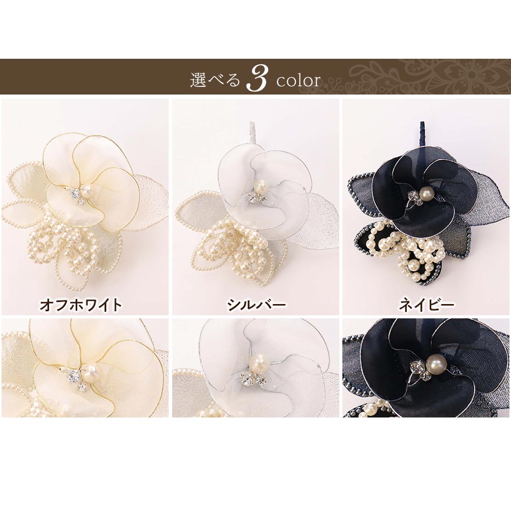 【event_formal】【商品名】 コサージュ 日本製 2輪コサージュ 高級 ブローチ 卒園式 卒業式 入学式 パール フラワー おしゃれ パーティドレス 結婚式 フォーマル 七五三 【カラー】 オフホワイト、シルバー、ネイビー 【サイズ】 約10.0×11.0cm 【素材】 サテン、オーガンジー、シルクオーガンジー、樹脂パール、ガラスストーン \ミッシュキッシュオリジナル コサージュ / ▼こんなシーンにおすすめ▼ コサージュ 結婚式/コサージュ フォーマル そのほか 披露宴 二次会 発表会 演奏会 同窓会 などの様々な パーティー お呼ばれ で ドレス や ワンピース が 華やか に♪ 20代 30代 40代 50代 60代 母親 子ども キッズ コサージュ 卒業式/コサージュ 入学式/コサージュ 卒園式/コサージュ 入園式 幼稚園 や 保育園 学校行事 式典 での ママ の スーツ や ジャケット ワンピース セレモニー スタイルも 上品 に! 七五三 お宮参り シーンでの着用もおすすめです。 浴衣 髪飾り/ 七五三 髪飾り / 成人式 髪飾り/ 結婚式 和装 髪飾り コサージュ クリップ が付いているので 和装 での ヘアスタイル にもご利用いただけます。 ヘア コサージュ ( ヘッドドレス ) としても使えるので ヘアアレンジ の幅が広がります。コサージュマグネットはこちら▶ 商品説明 特徴 大小のパールが華やかに輝き、上品な透け感が美しいお花を組み合わせたコサージュです。パール部分をよく見てみると、こちらもお花の形にくみ上げられたこだわりのデザイン。 思わず細部までじっくりと眺めたくなる、ひとつひとつ国内で丁寧に作り上げたこだわりのコサージュです。 カラー オフホワイト、シルバー、ネイビー サイズ 約10.0×11.0cm 素材 サテン、オーガンジー、シルクオーガンジー、樹脂パール、ガラスストーン 配達方法 宅配便〇 ご注意 ※素材感や色合いの表現には個人差があります ※環境により色合いが異なる場合があります ご了承の上ご注文お願い致します