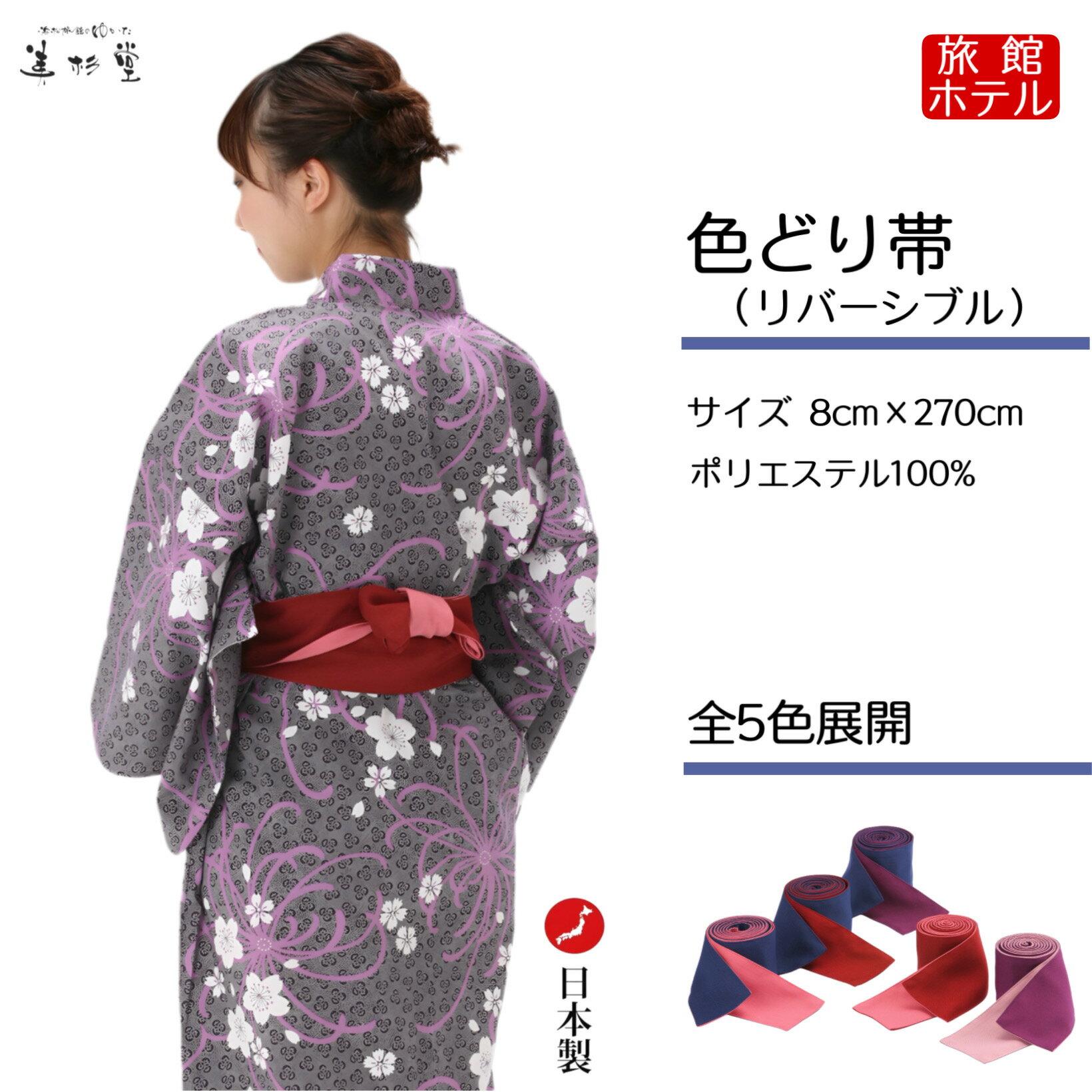 【10本/50本/100本セット】色どり帯(リバーシブル)旅館ゆかた帯 【5色展開】【大人用】【巾8cm*長さ270cm】【ポリエステル100%】【彩り生地】【男女兼用】【ゆかた帯】【細巾帯】【旅館帯】【旅館】【ホテル】【寝巻き浴衣】【業務用】