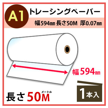 【楽天倉庫から365日発送!】インクジェットロール紙 トレーシングペーパー 幅594mm(A1)×長さ50m 厚0.07mm プロッター用紙 大判ロール紙 大判インクジェット用紙 大判プリンター 大判印刷 ポスター印刷【最強翌日配送】