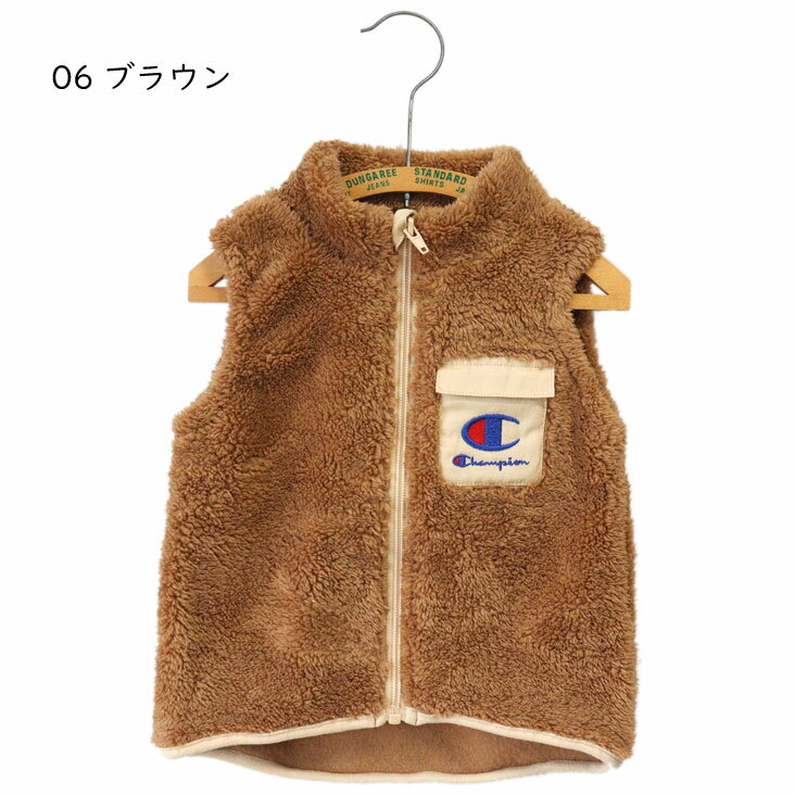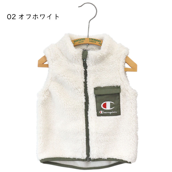 Champion チャンピオン BABY ボアフリース ベスト ポケット ロゴ 刺繍 ジップ 配色カラー かわいい トップス アウター カジュアル 秋冬 ノースリーブ ふわふわ 暖かい 男の子 ボーイズ 女の子 ガールズ 子供服 ベビー キッズ 誕生日 クリスマス プレゼント ギフト お揃い